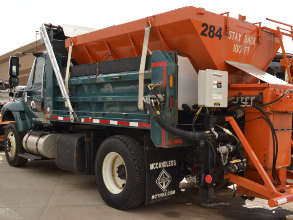 This truck is one of the town's larger plow trucks and is shown equipped with a sander insert that also has side 200-gallon mag tanks.