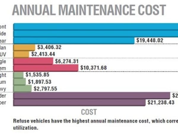 Refuse vehicles have the highest annual maintenance cost, which corresponds with high vehicle utilization. Source: Utilimarc