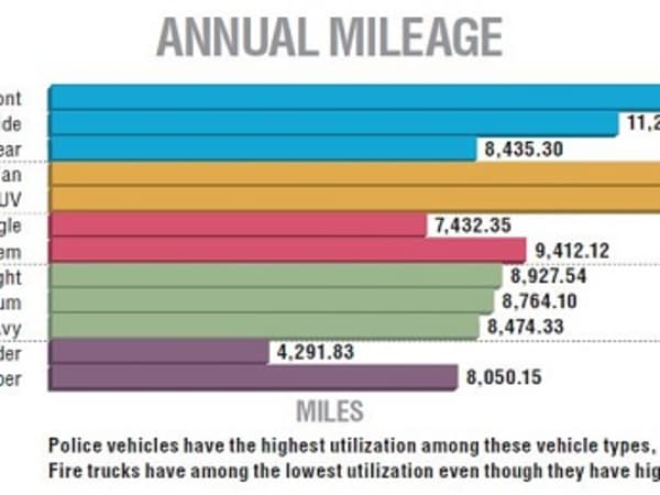 Police vehicles have the highest utilization among these vehicle types, followed by refuse trucks.Fire trucks have among the lowest utilization even though they have high maintenance costs. Source: Utilimarc