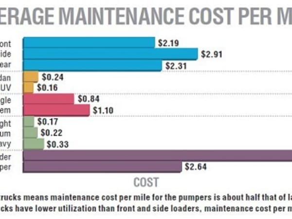 rear-loader refuse trucks have lower utilization than front and side loaders, maintenance cost per mile for these trucks is lower. Source: Utilimarc