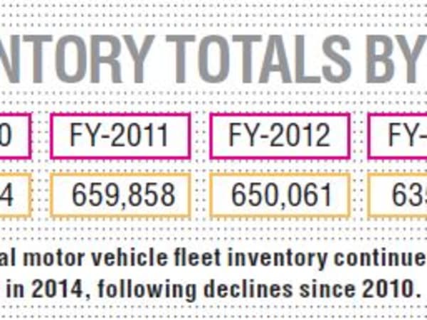 FEDERAL FLEET: The federal motor vehicle fleet inventory continued to decline in 2014, following declines since 2010. Source: U.S. GSA