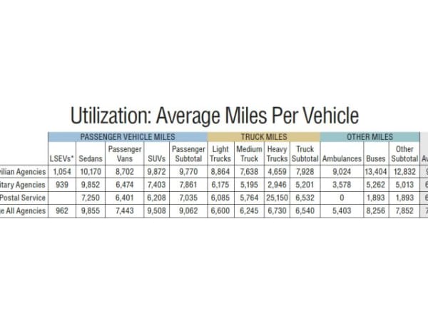 This table shows the average miles traveled per vehicle type in fiscal-year 2015. Compared to fiscal-year 2014, utilization has increased overall in comparison to the prior year. Civilian agencies and the U.S. Postal Service increased utilization, while military agencies' vehicle utilization decreased slightly.