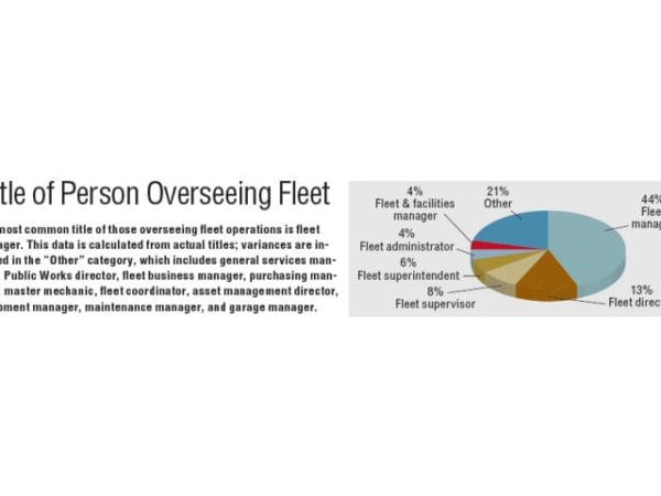 The most common title of those overseeing fleet operations is fleet manager. This data is calculated from actual titles; variances are included in the “Other” category, which includes general services manager, Public Works director, fleet business manager, purchasing manager, master mechanic, fleet coordinator, asset management director, equipment manager, maintenance manager, and garage manager.