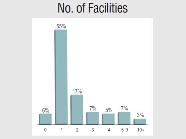 More than half of survey respondents reported having less than 10 technicians. Respondents with more than 100 technicians reported having at least 10 maintenance facilities. Those who had no technicians were not included in this chart.