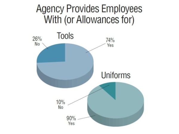 The majority of public fleets provide tools and/or uniforms for employees, or allowances for them.