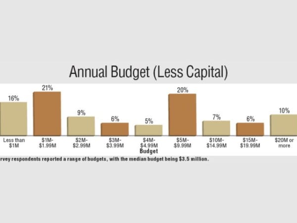 Survey respondents reported a range of budgets, with the median budget being $3.5 million.