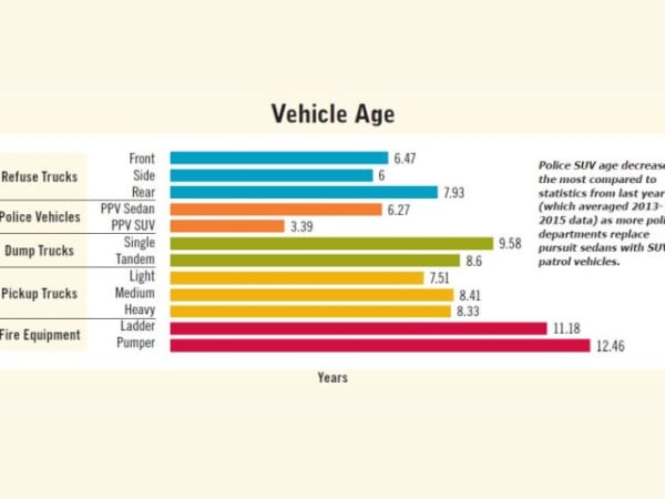 Police SUV age decreased the most compared to statistics from last year (which averaged 2013-2015 data) as more police departments replace pursuit sedans with SUV patrol vehicles.