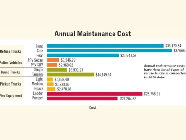 Annual maintenance costs have risen for all types of refuse trucks in comparison to 2016 data.