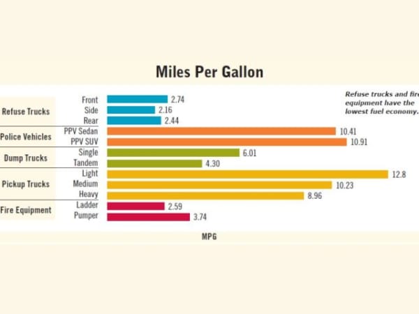 Refuse trucks and fire equipment have the lowest fuel economy.