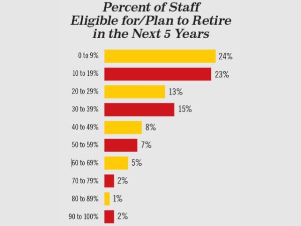 About 17% of respondents believe at least half their staff members are eligible for or plan to retire in the next five years.