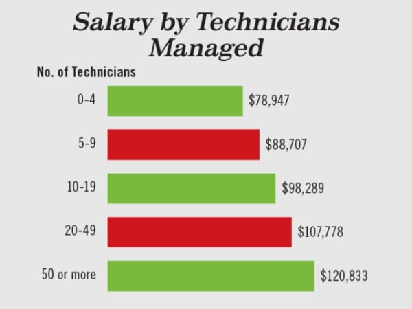 Those managing more technical staff are paid more on average.