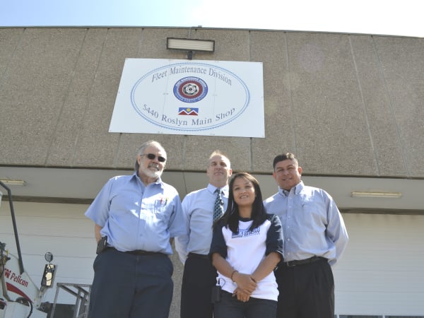 The City and County of Denver fleet is focusing on improving equipment availability this year. Fleet management staff pictured (l-r) are Duane Fields, Todd Richardson, and Robert Coronado with Government Fleet Executive Editor Thi Dao.