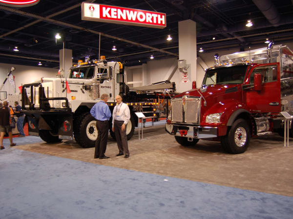 In the heavy-duty category, Kenworth displayed several trucks, including its new T880 dump truck rock slinger at right.