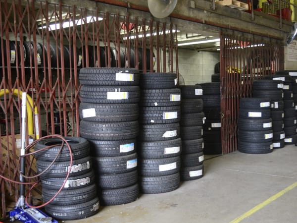 About 300 tires are kept in inventory at all times. Tires are usually ordered 100 at a time due to the high volume of tires used, especially on police vehicles.