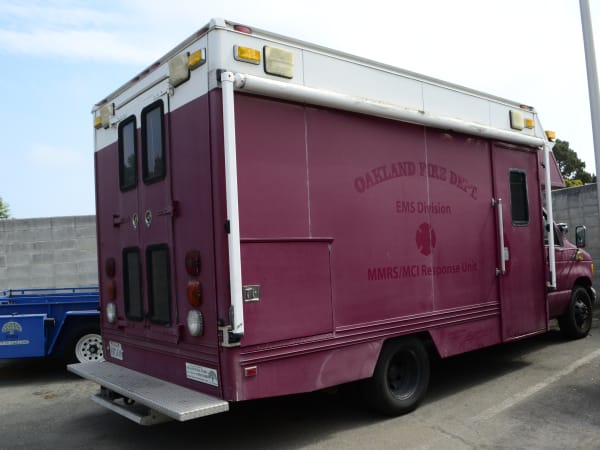 Big Red, a mobile service truck, is stocked with tires, batteries, and essential parts and driven to Oakland Police Department's two parking lots to service off-site vehicles.