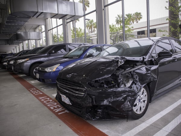 An indoor structure allows fleet to securely store vehicles involved in accidents that can't be released yet.