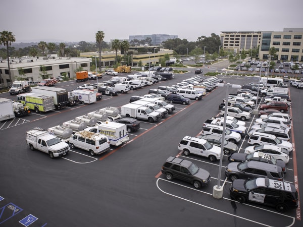The top floor of the building is reserved for fleet vehicles and houses vehicles coming in and going out of service. It is ready to be upfitted with solar panels.