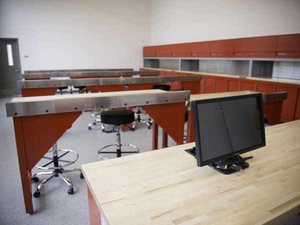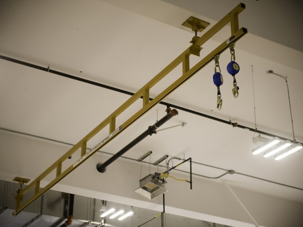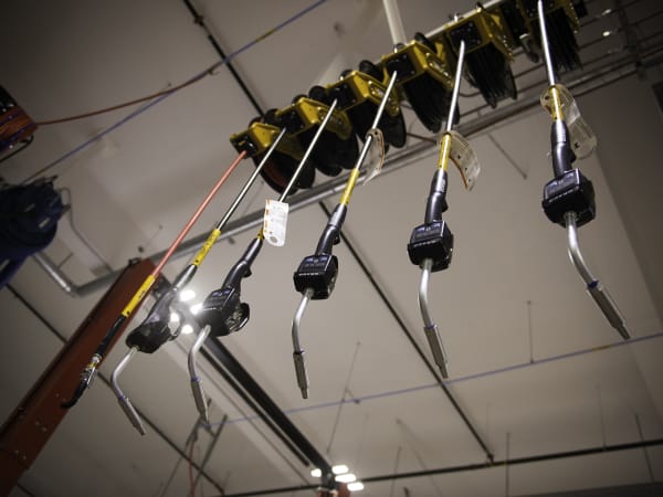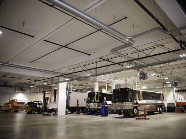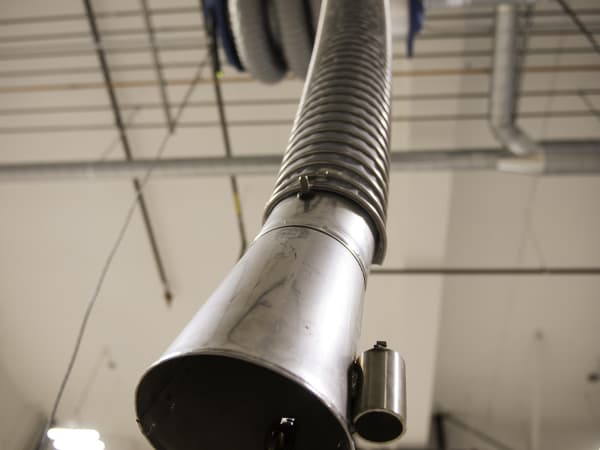 The indoor exhaust evacuation system along with carbon dioxide sensors, allows technicans to work even when the doors are closed. The exhaust system is capable of doing five complete air exchanges every hour.