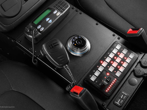 A console mounting plate allows fleets to install equipment. Photo courtesy of Ford