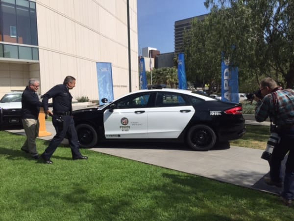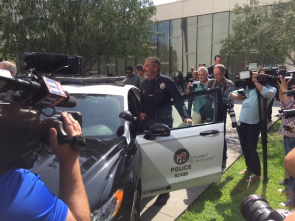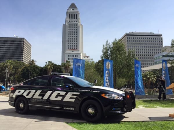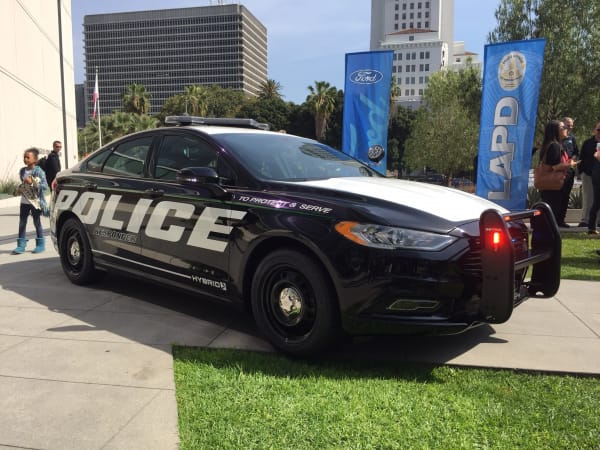 The Police Responder Hybrid was revealed at Los Angeles Police Department headquarters, and included a version painted to resemble an LAPD patrol car. Photo by Chris Brown