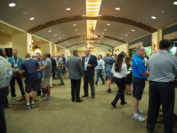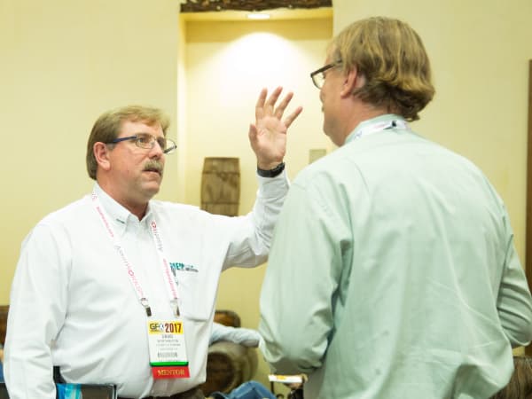 David Worthington from Sonoma County, Calif., (left) speaks to Richard Battersby from the City of Oakland at a networking event.