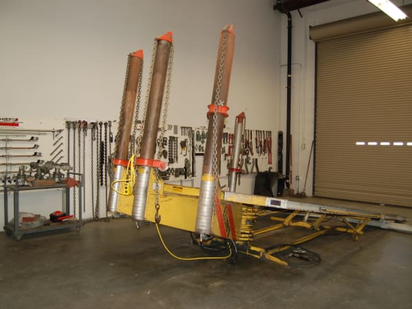 This machine is used by body and fender mechanics when frames are bent or when cars need to be stretched or pulled back into alignment.