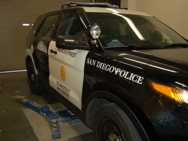 In addition to doing work on its own vehicles, the San Diego city fleet also works on vehicles from other agencies, such as the pictured law enforcement unit from the Sycuan Band of the Kumeyaay Nation. The white sedans are light-duty Fire Department vehicles used as administrative vehicles.