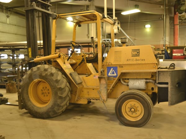 This forklift is in the process of being replaced with a quieter propane-powered forklift.