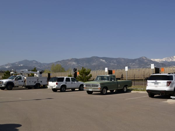Pike's Peak can be seen from the joint city and utility fleet facility.