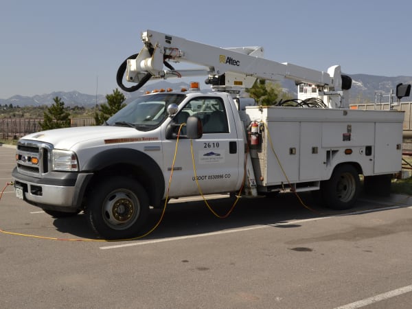 The utility fleet has a large aerial fleet of more than 80 vehicles, including this Altec AT- 37G insulated bucket truck that supports the electric troubleshooter group.