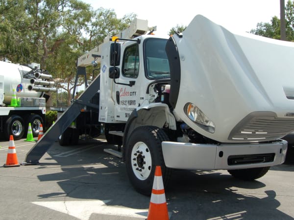 Culver City Public Works truck with Freighliner chassis, ISLG CNG engine, and 10-ton Terex crane.