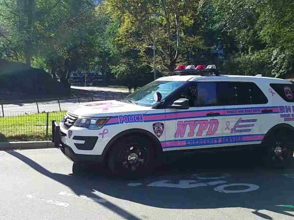 Breast Cancer Awareness month is celebrated every October. This police car is a wrapped K-9.