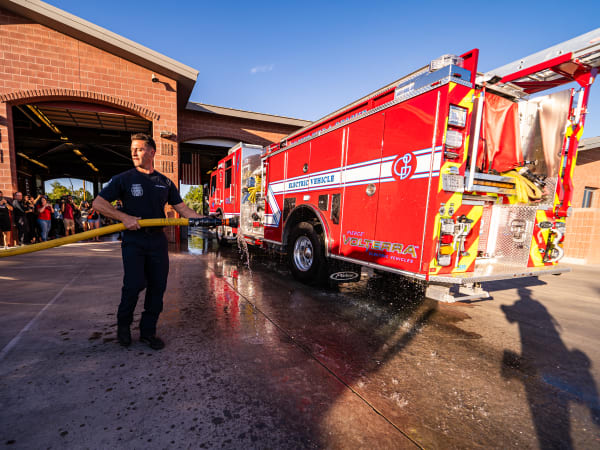 The Gilbert, Arizona, Fire and Rescue Department is going green. The department celebrated the delivery of its Pierce Manufacturing Volterra electric pumper with a push-in ceremony on Oct. 27, after securing a contract for it a year ago.