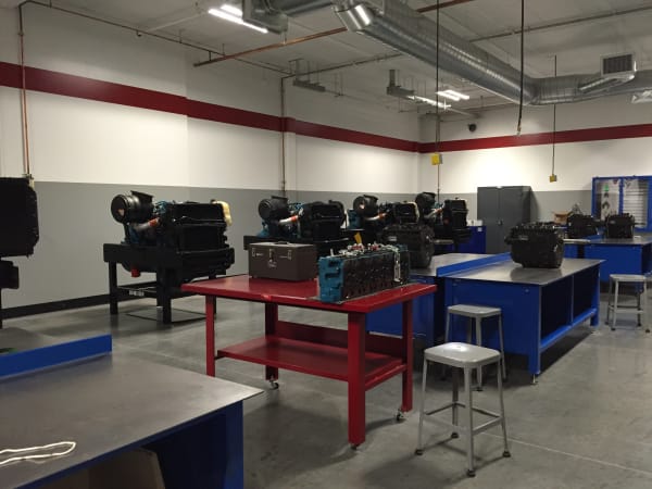 A lab workspace is available for students studying undercar repairs, steering and suspension, diesel preventive maintenance, and other subjects. This workspace can hold two to four classes at the same time.
