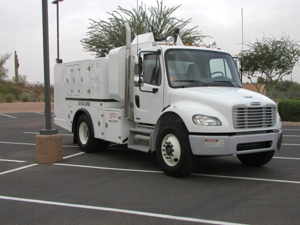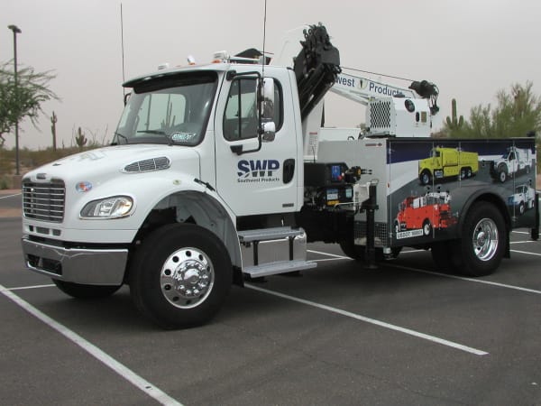 Southwest Products (SWP) brought this Freightliner 585 equipped with a service body. This model is a Certified Clean Idle vehicle.