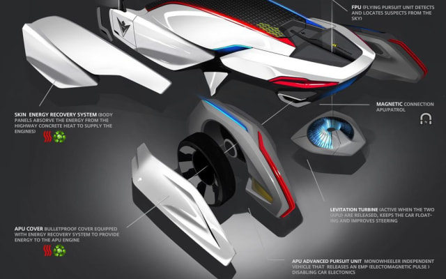 The 2012 LA Auto Show's Design Challenge, now in its 9th year, was themed Law Enforcement in 2025. Six design studios designed highway patrol vehicles to meet "the challenges of a specific region’s transportation and societal conditions in 2025.” Entries were judged by Tom Matano, School of Industrial Design at San Francisco's Academy of Art University; Imre Molnar, Detroit College of Creative Studies; Stewart Reed, Pasadena Art Center College of Design; and Bruce Meyer, California Highway Patrol 11-99 Foundation. Subaru's SHARC won the challenge. For more information, visit The Police Car of the Future is a Subaru.