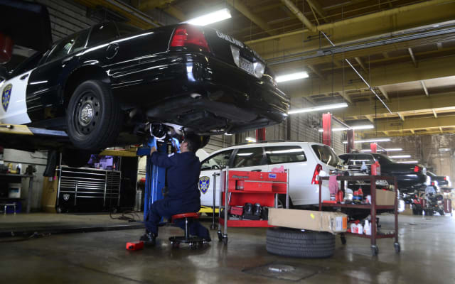 The California Highway Patrol uses an assembly line to set up its vehicles to achieve uniformity.
