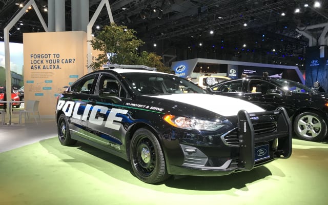 Ford displayed production versions of the Police Responder Hybrid Sedan and Special Service Plug-In Hybrid Sedan at the New York Auto Show. Concept models for these vehicles were announced in 2017. Photos courtesy of Ford