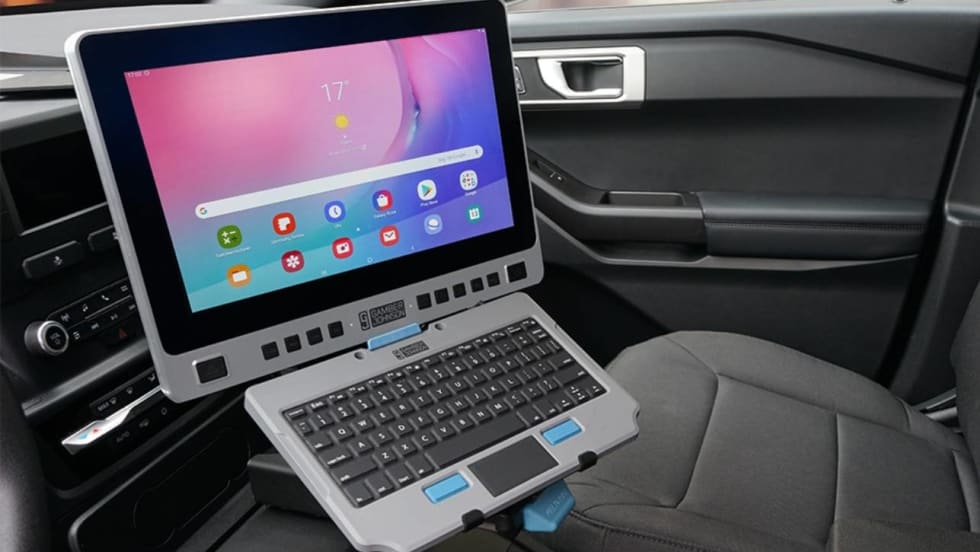 Gamber-Johnson offers multiple options to hold the Samsung Galaxy Tab Active4 Pro. One version is a lightweight and cost-effective cradle with a bare wire, cigarette adapter and MP205 docking stations with dual USB ports to power your keyboard or other peripherals, and a charging only option. It's specially designed to work in police cars, ambulances, utility trucks, semi-trucks, forklifts, and warehouses.