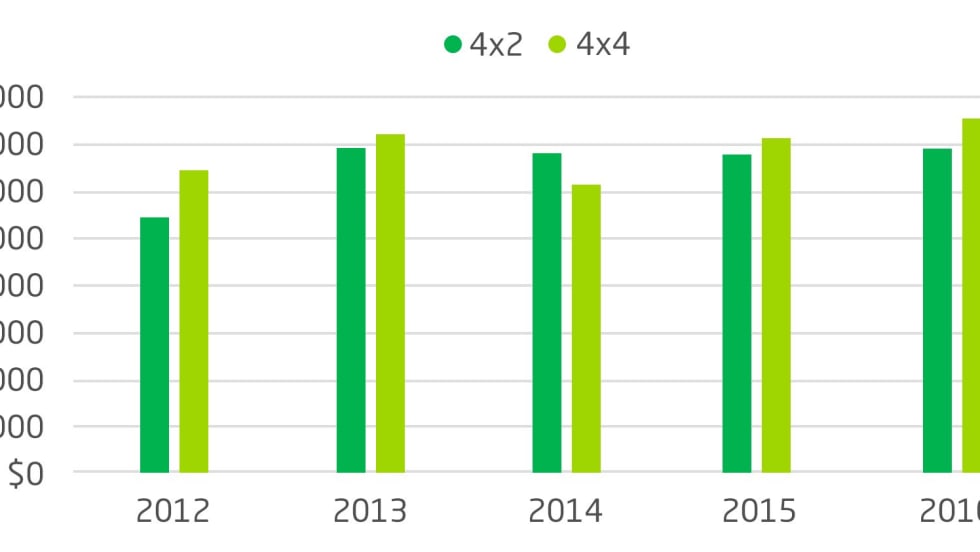 Among utility fleets, the 4x4 light-duty service truck has grown steadily in popularity over the past five years, beating out its 4x2 counterpart, according to Utilimarc.