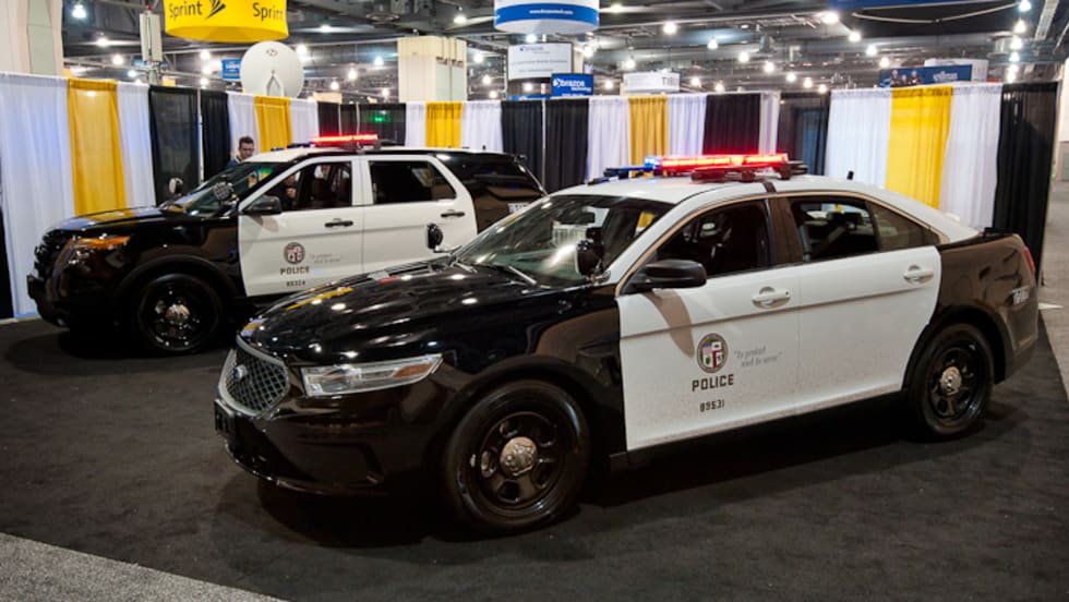 The Los Angeles Police Department showed off versions of Ford's Police Interceptor sedan and P.I. Utility at a police chiefs' conference in Philadelphia this week with an in-dash display that would de-clutter a patrol car's cockpit.