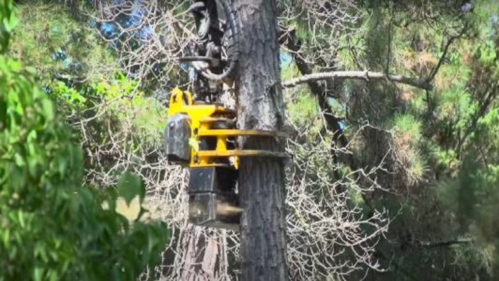 The telescoping grappling saw allows contractors to take trees down at a faster pace than traditional tree removal processes.