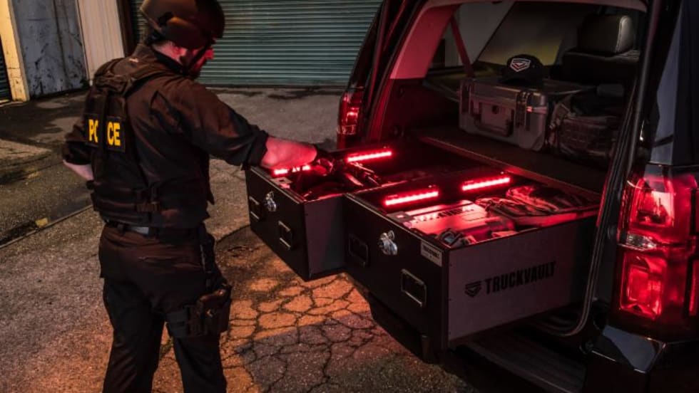 TruckVault offers custom solutions to help departments integrate drone technology. Effectively secure and store both drones and batteries within the vehicle compartment.