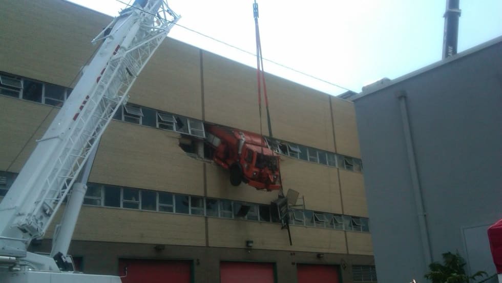 QUEENS, NY – On Wednesday, August 17, a 16-ton New York City Sanitation Department salt truck crashed through the second story of a repair garage (the building's third story).