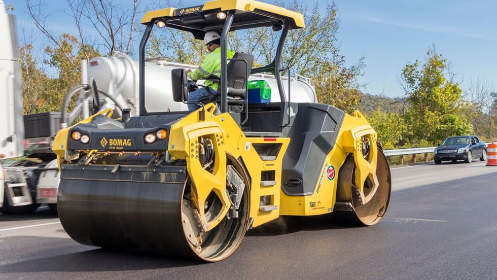 Case Construction Equipment’s DV45CC combination vibratory roller compacts with the front drum and delivers a smooth finish with the rear pneumatic tires.