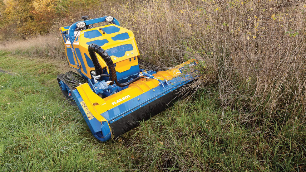 The wirelessly operated track mower from Bomford Turner can take on the most difficult jobs on hilly terrain without compromising safety.