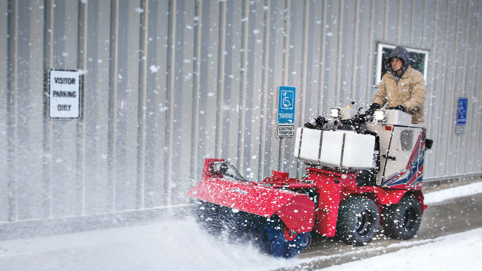 The new Ventrac Sidewalk Snow Vehicle is a skid-steer-style machine designed specifically for snow and ice removal on narrow sidewalks and park pathways.