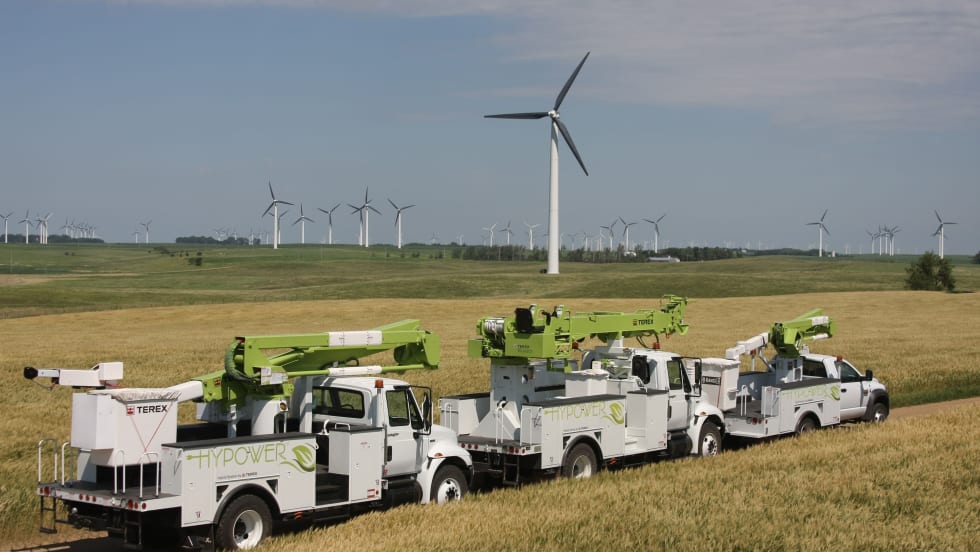 LONGMONT, CO - The City's four new trucks, a digger derrick and three bucket trucks, are equipped with Terex' HyPower Hybrid System.