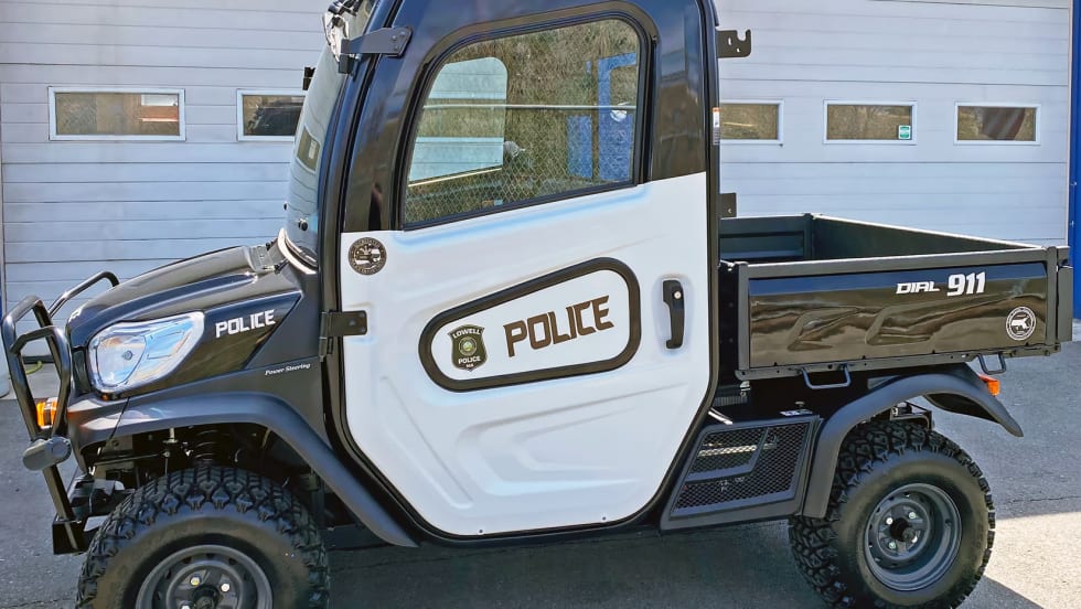 Lowell PD's new UTV was upfitted with repurposed lights and radio equipment from old police cruisers to equip the utility vehicle, which prevented the department from having to buy that equipment new — a substantial cost savings.