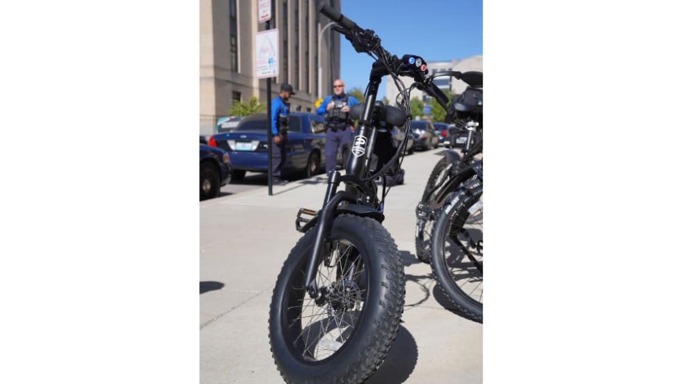 The e-bike extends the range of patrols and eases the physical burden on officers who laden down with 40 lbs. of equipment.